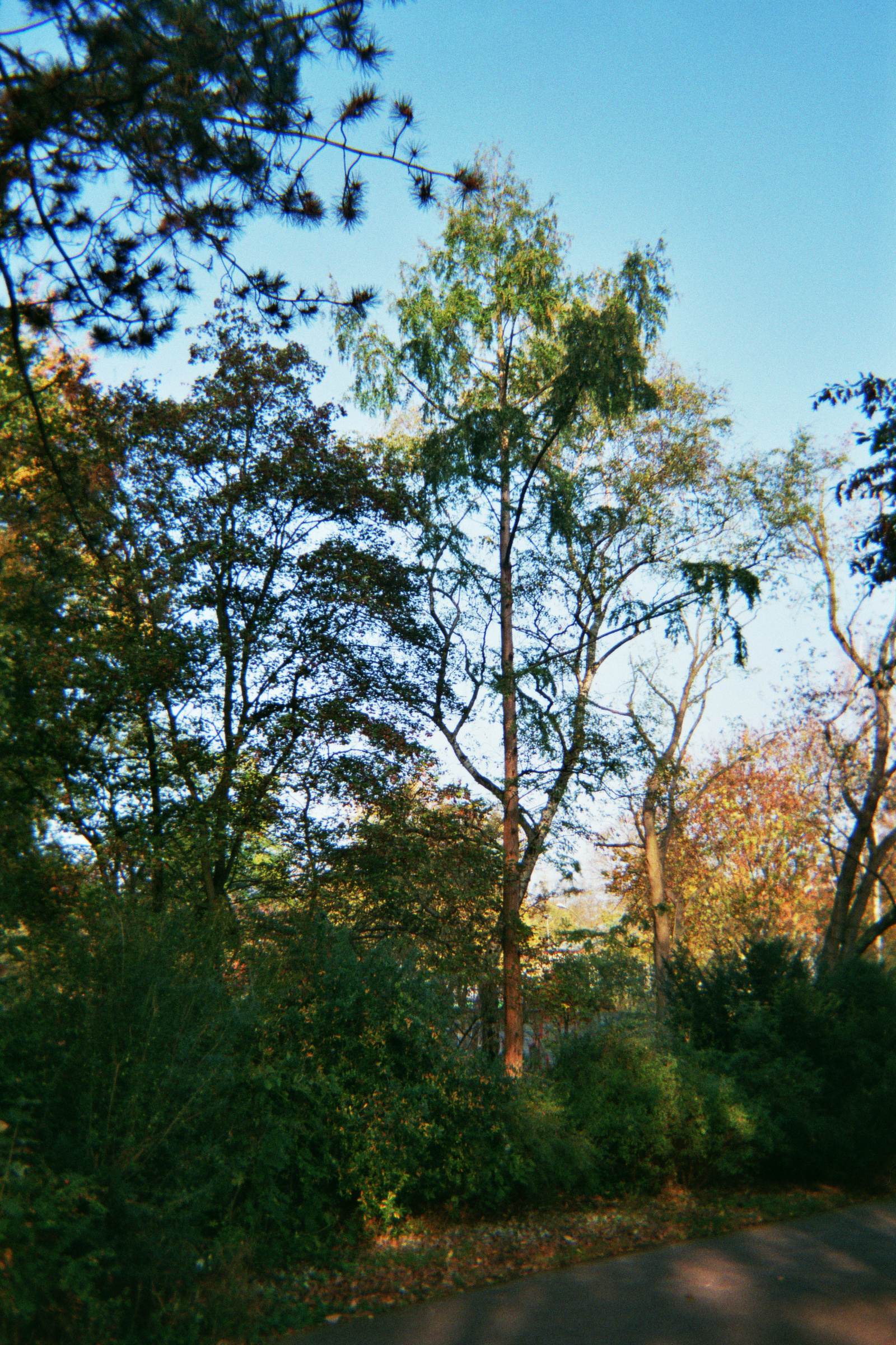 Der Urweltmammutbaum Metasequoia glyptostroboides. In Berlin im Bezirk Neukölln in dem Park Thomashöhe am 29. Oktober im Jahre 2014.