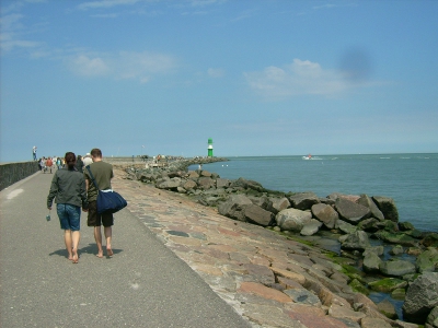 Farbfoto: Auf der Mole in Warnemünde im Juni des Jahres 2009. Fotograf: Bernd Paepcke.